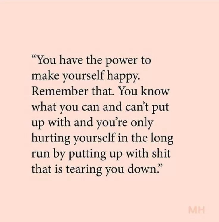 “You have the power to make yourself happy. Remember that. You know what you can and can’t put up with and you’re only hurting yourself in the long run by putting up with sh*t that is tearing you down.”