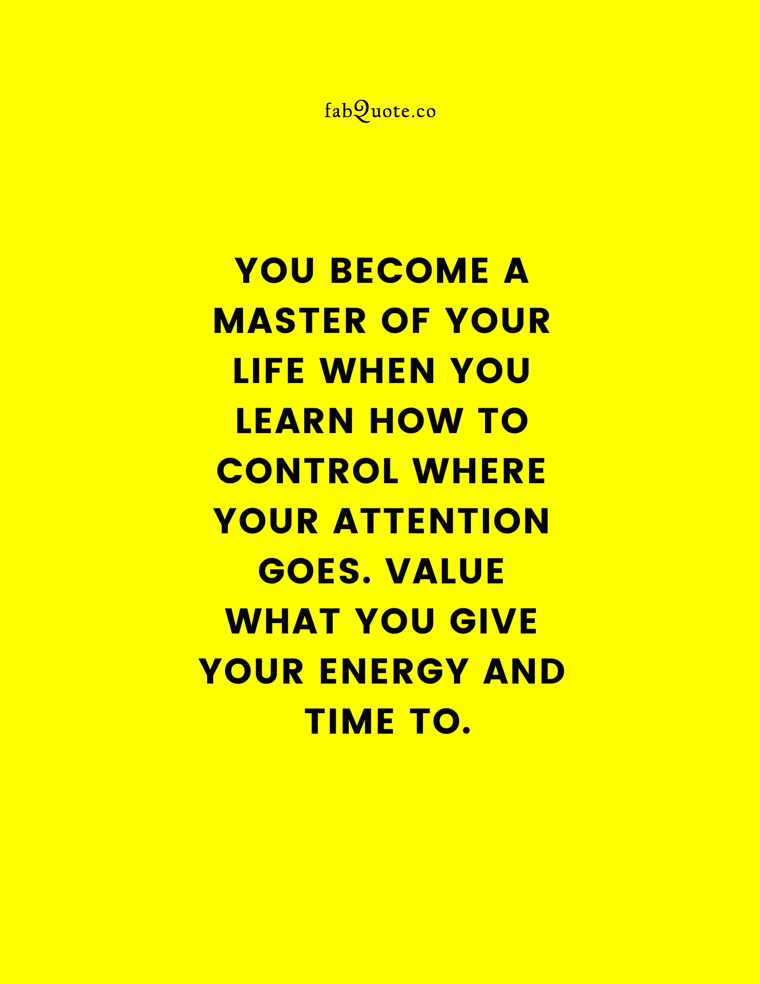 “You become a master of your life when you learn how to control where your attention goes. Value what you give your energy and time to.”